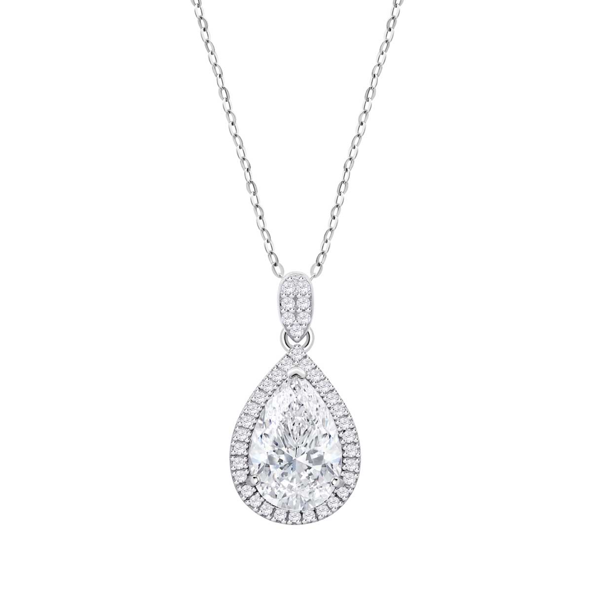 Lotus Silver CZ Pear Pendant - 45cm