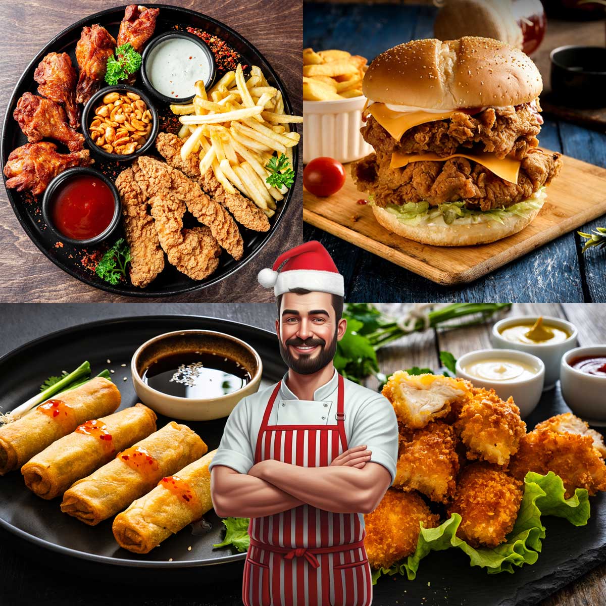 Contents:Battered Chicken Nuggets 1kg Ham & Cheese Jambons x 4 Breaded Garlic Mushrooms 1kg Mini Spring Rollsx 50Onion Rings in Batter 1kgSpicy Potato Wedges 2.5kg Chips 2.5kgPrime Beef Burgers x 4 Breaded Chicken Burgers x 4