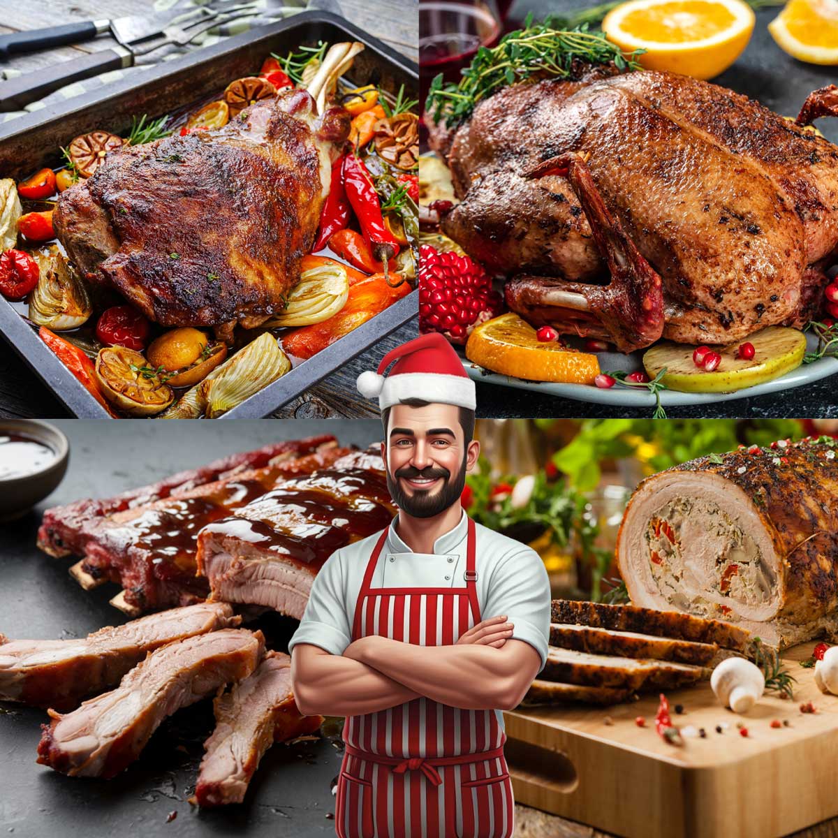 Contents:Stuffed Pork Joint 1.8-2kg Leg of Lamb 2kgPork Fillet 454g x 2Loin Bacon Joint 1.8-2kg Top Rib Roast 1.8-2kgBoneless Ham Fillet 3-4kg Smoked Ham Fillet 2-2.5kg Traditional Whole Duck 1.8kg
